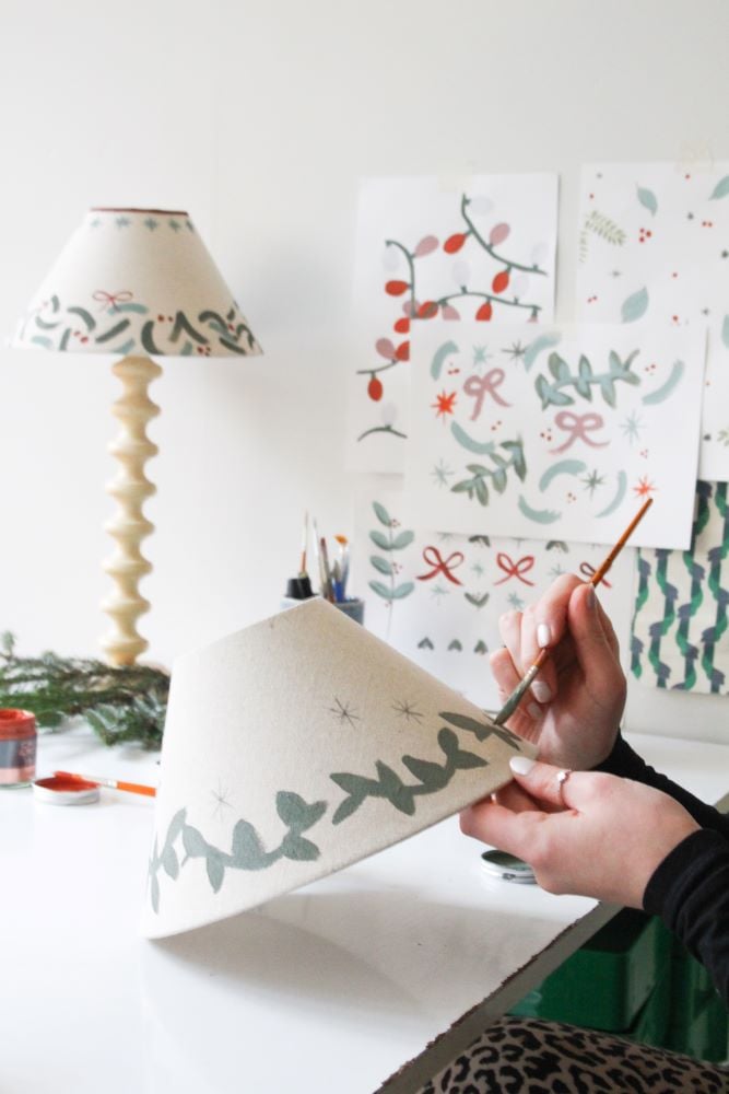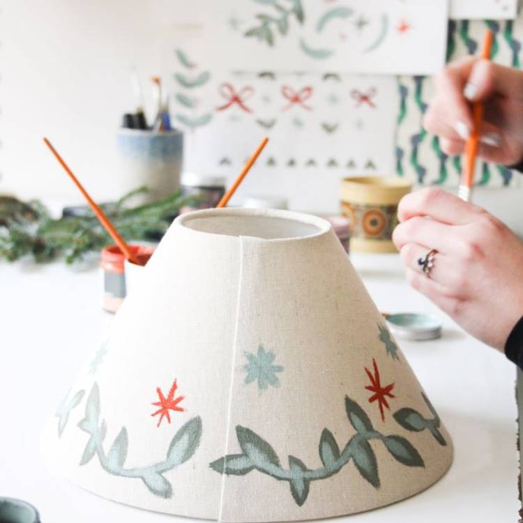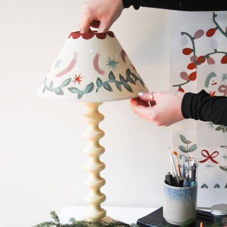 Start by gathering inspiration for your lampshade design, look at Christmas motifs, foliage, patterns, and colours.
