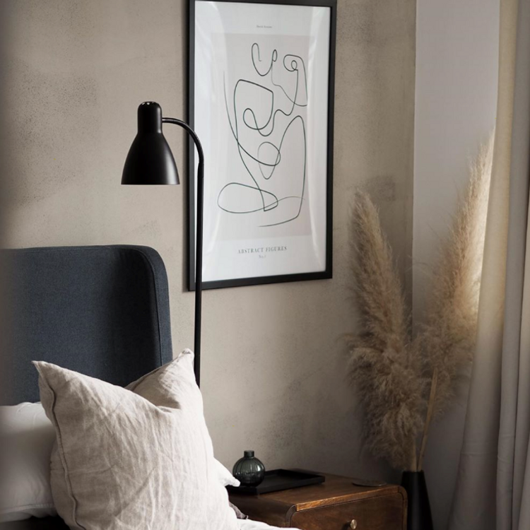 Crushed linen, impactful pampas grass and the striking black linear details in Bryony's bedroom really help to highlight the texture that this special effect paint creates.