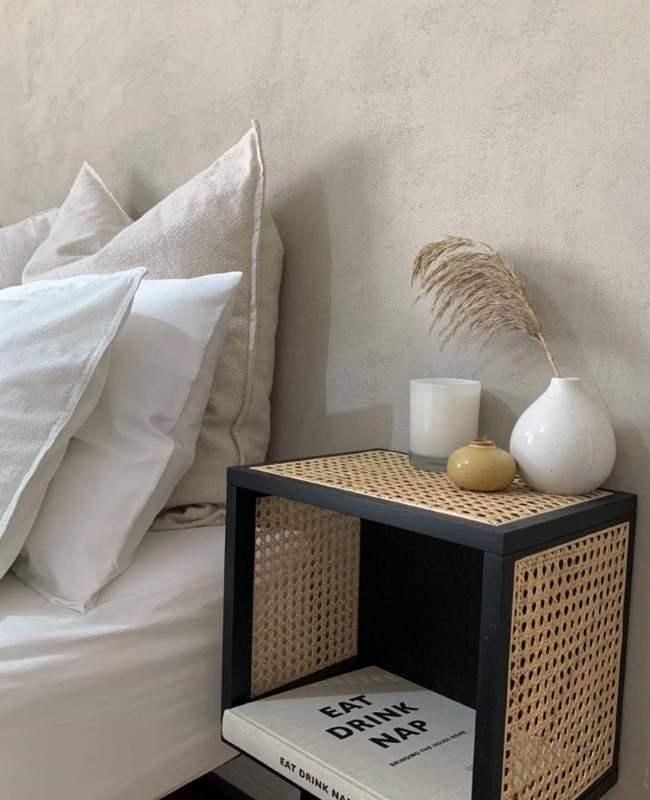 Emma has successfully combined natural fabrics in multiple tones alongside highlights of black and rattan webbing against the backdrop of European Stone.