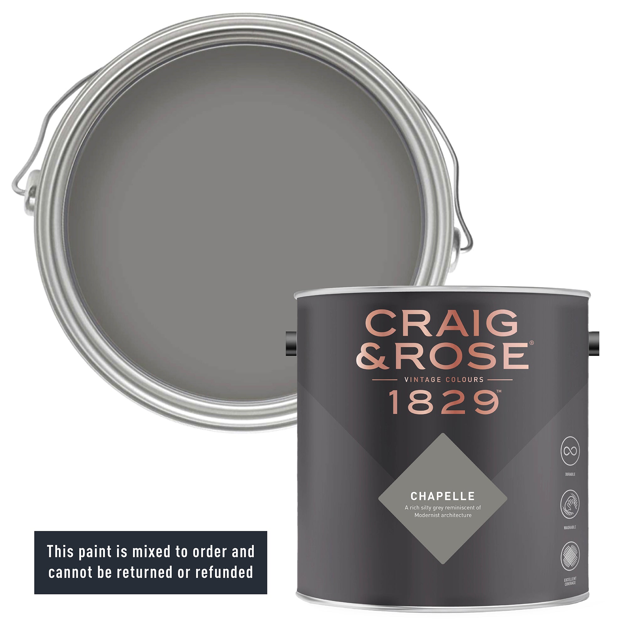 Modernist grey. The perfect atmospheric grey paint for a modernist mood. Craig & Rose's answer to the Modernist architecture movement is Chappelle. Its silt-grey tone has a warm quality. Adaptable for a moody scene, should you desire to embrace the darkness with opulent textures. Or make a contrasting statement and team with crisp white woodwork and mid-century furniture.