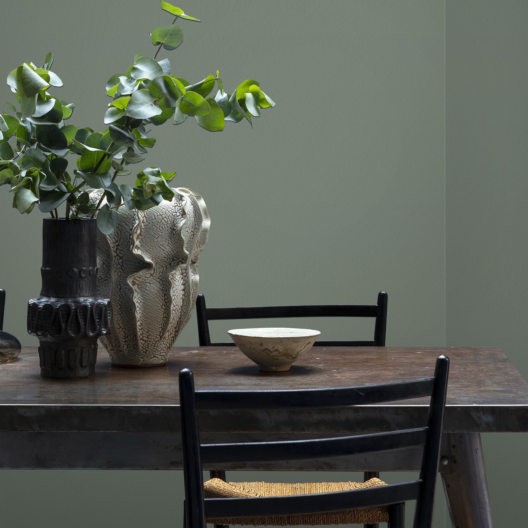 Grown-up green. Stay grounded with this unstuffy, clean, and sophisticated green paint with a contemporary, refined aesthetic. Craig & Rose have crafted a fresh take on the plush ornamental greens often used in Victorian parlour rooms. Pullman Green has a charcoal base giving any wall a crisp modern evergreen finish. Freshen up your space with a green rooted in decadent history minus the weighty feel.