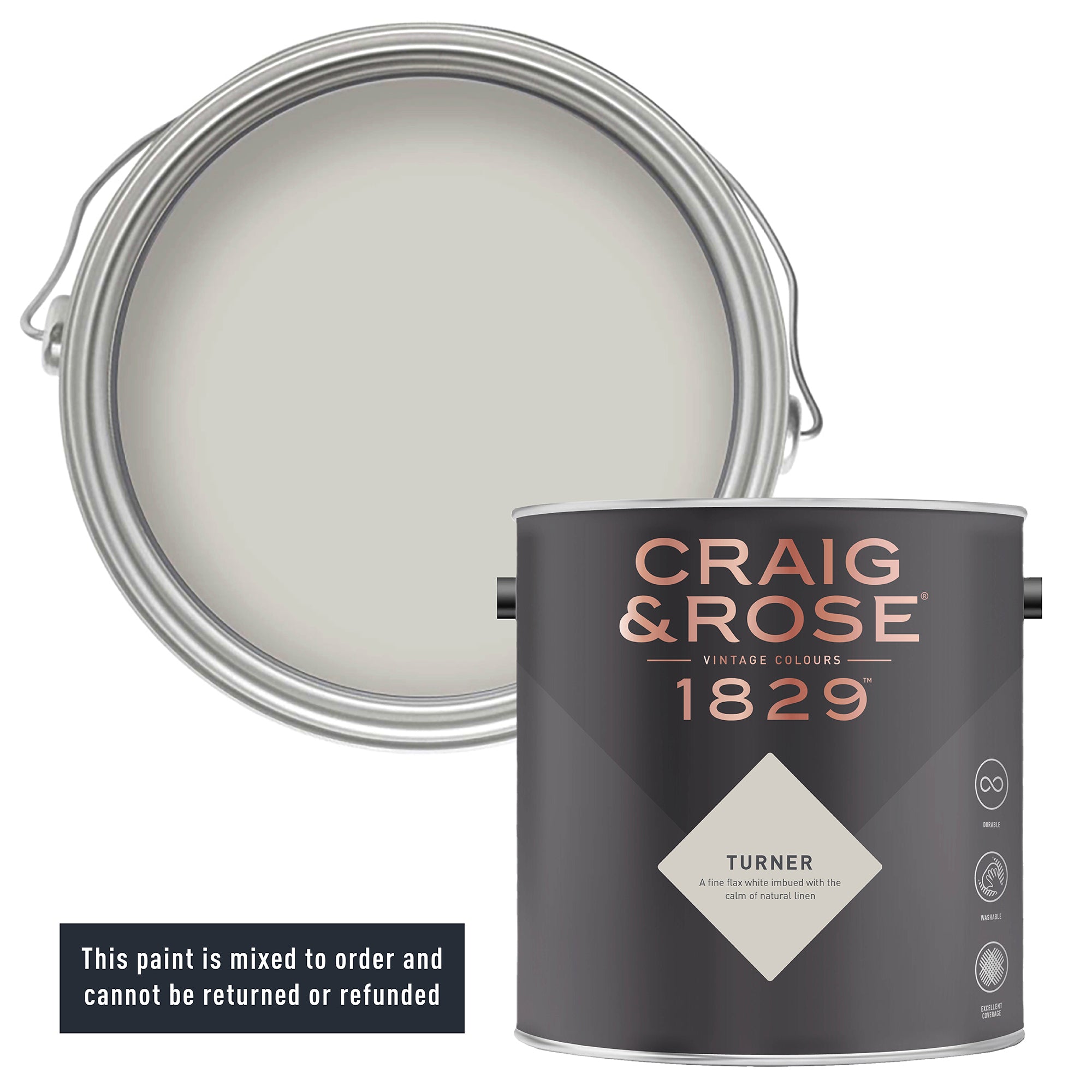 Misty morning. A linen flax for softly illuminating your interior-scapes. Our Turner light grey paint, inspired by the painter JMP Turner, draws upon his distinctive use of colour and light to create a dramatic haze effect. This flaxen shade has all the softness of natural linens and misty mornings, perfectly adept at bringing a muted calm to your stylings, traditional or contemporary - just like Turner's famed artwork - this is a timeless, light-giving shade.