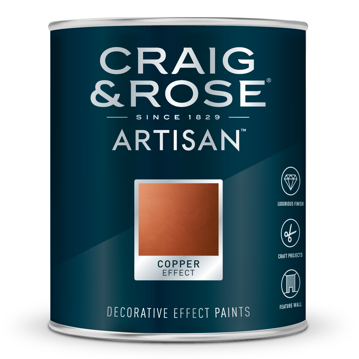Metal earth. Fall deep under the timelessly tactile spell of copper and reach full glow with our Artisan Copper Effect paint. Get creative with your finish. Bring brushed, bruised or polished copper into your projects with refreshed doors, details and decor. You could even go bold outdoors and refresh your garden ornaments with a contemporary edge. Perfect the finish, follow our application how-to's and get the copper feel of your dreams. If you're looking for a more striking aesthetic, apply our Artisan Copper Patina solution on top for a decadent weathered look.
