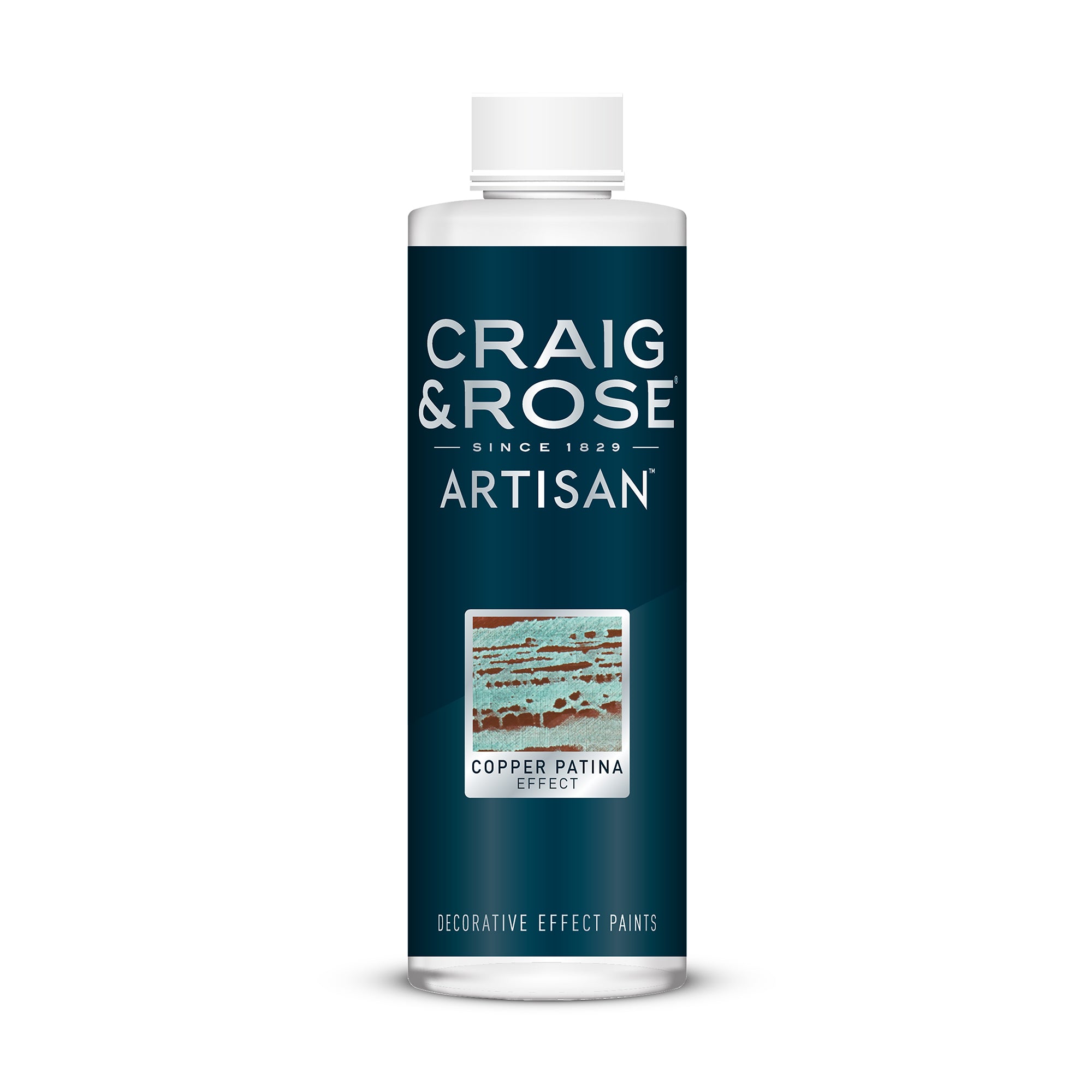Weathered stature. Craft your own paint story with the unique effect of our Copper Patina Solution. Apply over Craig & Rose Artisan Copper Effect paint and watch in wonder as you create opalescent colours of faded regency coastal rooftops, with deep mineral hues and romantic shades of Verdigris turquoise and aqua. Evoke the oxidized finish of copper cast statues and follow our application how-to's to get all the aged beauty of Copper Patina, minus the effort.