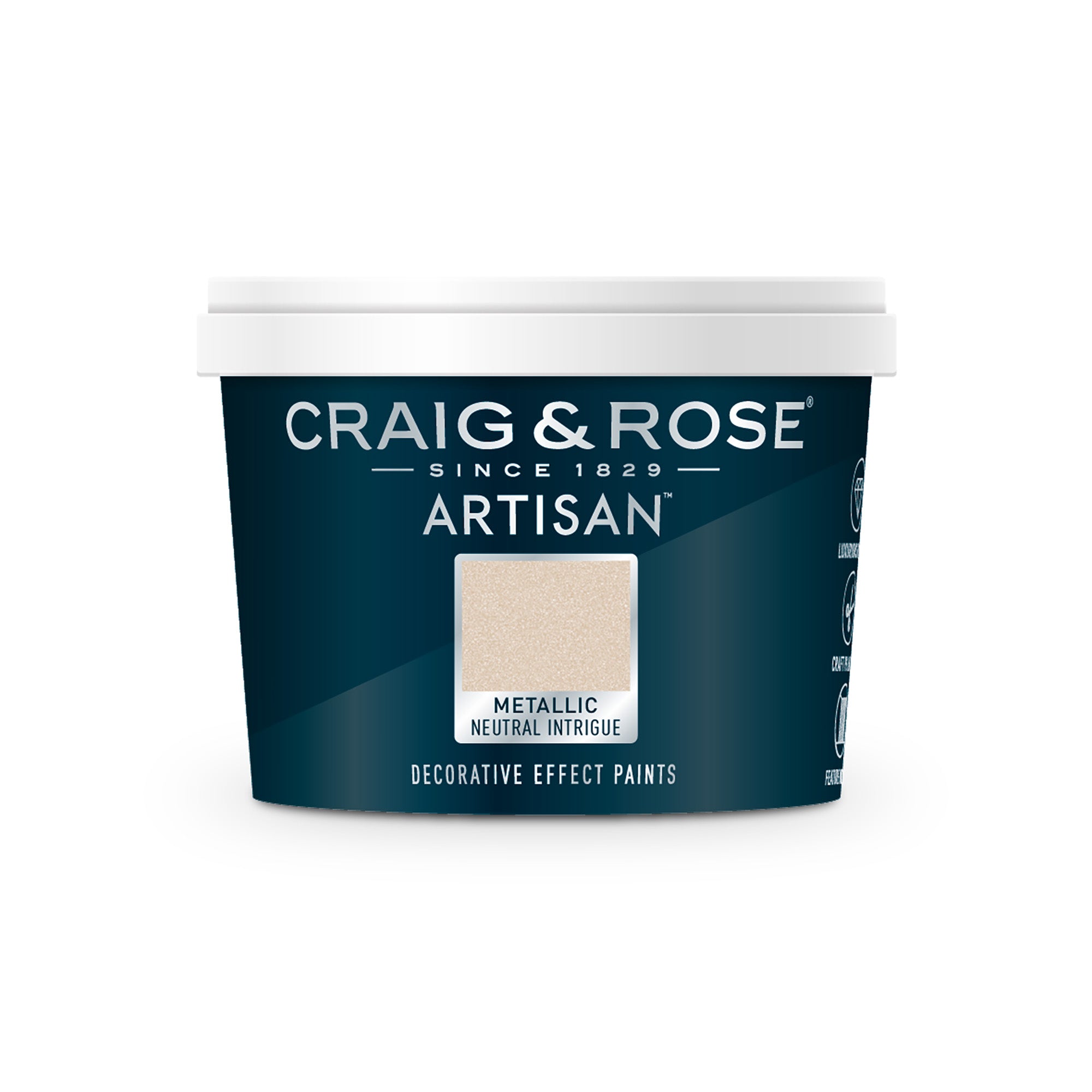 Platinum inflection. Create contrast with this metallic metal effect. Artisan Neutral Intrigue Metallic Effect is our palest metal paint. Add character and depth to your scheme with this warm silky tone. Experiment with different surfaces and materials and see how this shimmering effect brings different dimensions and tonality to any space.