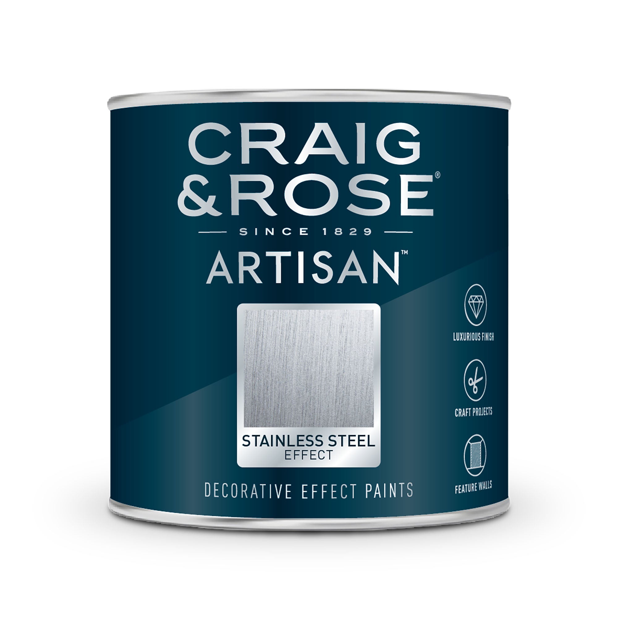 Liquid metal. A sleek, crisp metallic finish. Artisan Stainless Steel Effect's inherent sleep quality makes this paint perfect for utilising light and brightening darker spaces. Apply to fireplace panels or architectural features for an instant contemporary update. Or for the sublime, make a focal point and paint your own stunning brushed metal feature wall.